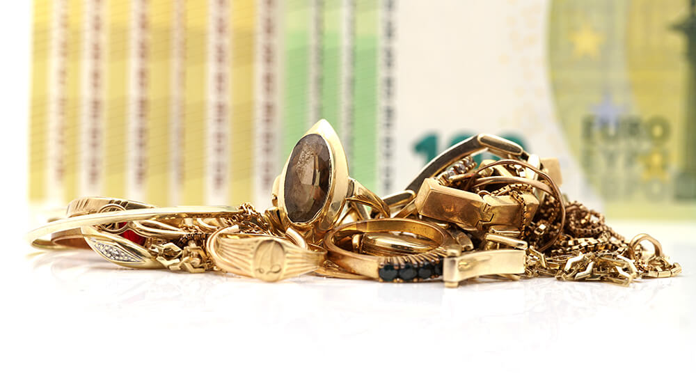 Alle Schmuckstücke aus Gold können Sie bei uns in Bargeld umwandeln.